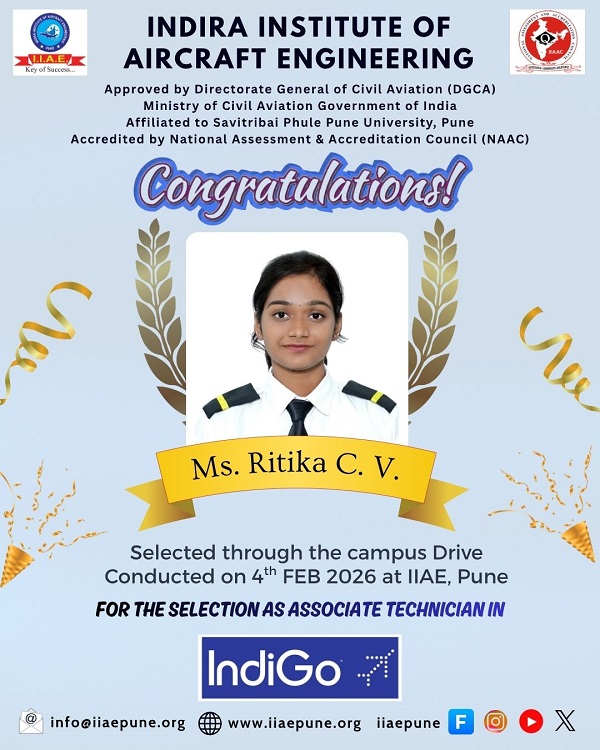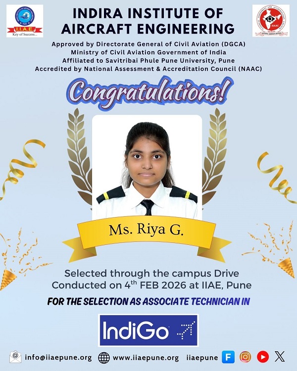 We the Indira Institute of Aircraft Engineering (IIAE) Pune welcome those who aspire to fulfill their dreams of launching themselves into the unbounded sky by enrolling & becoming the priceless membrane of the glorious aviation field. The IIAE can empower the aspirants to achieve their goal by imparting the effective and affective training in the field’s of theoretical and practical aspects of Aviation. This can be possible only when someone is bestowed with quality training.