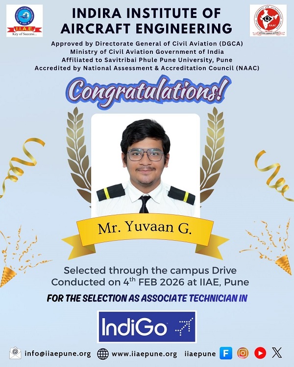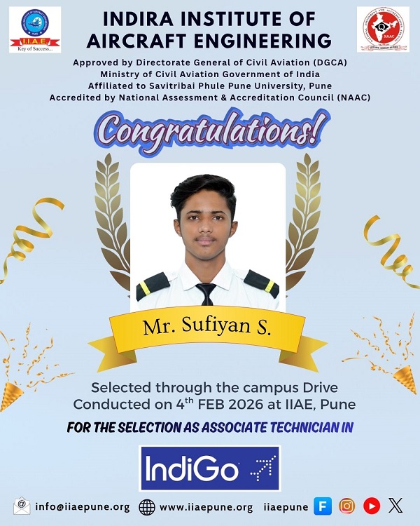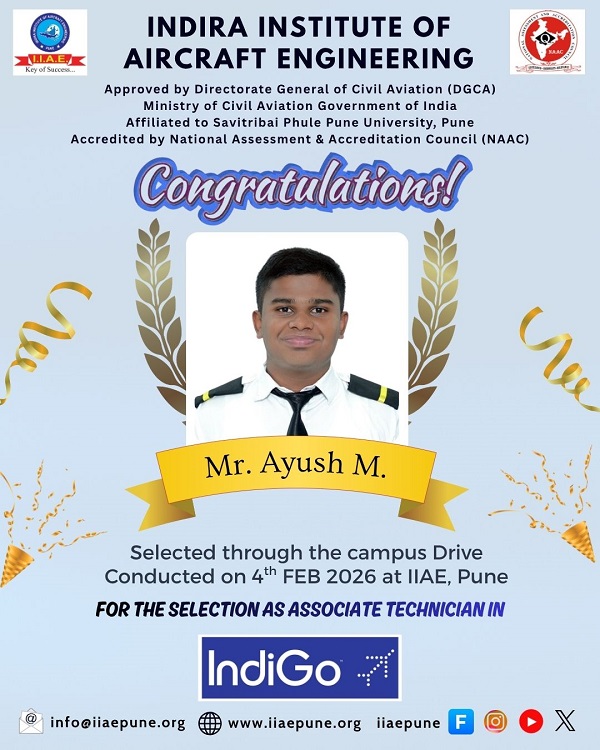 Studying at Indira Institute of Aircraft Engineering has been a great learning experience. The practical training, knowledgeable faculty, and aviation-focused environment have helped me build strong technical skills and confidence for my future in the aviation industry.