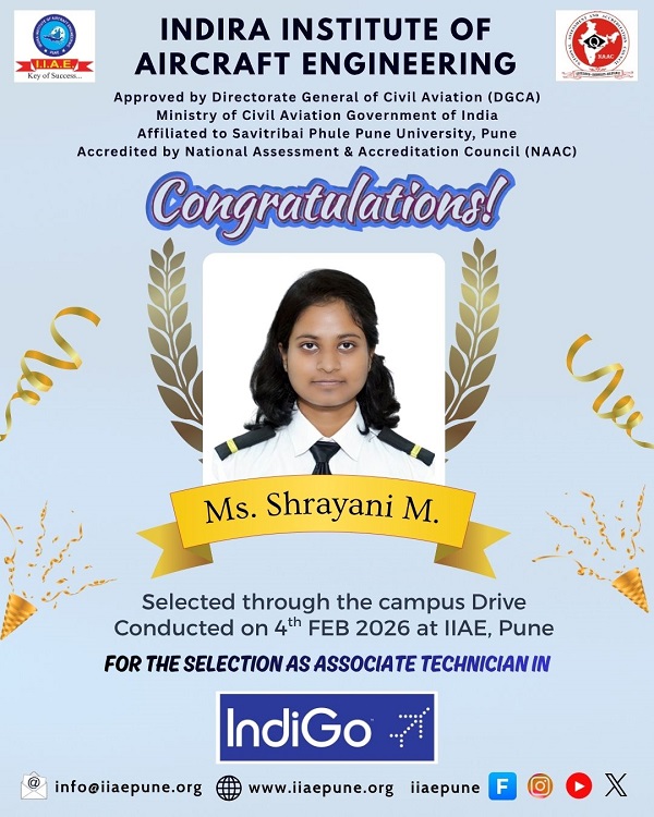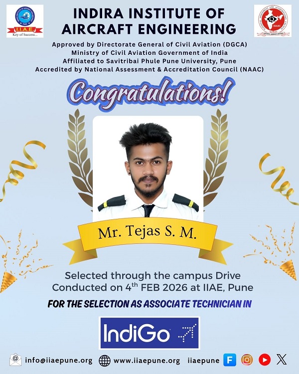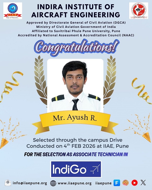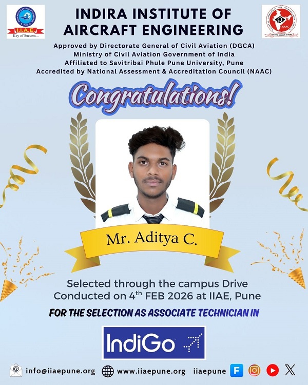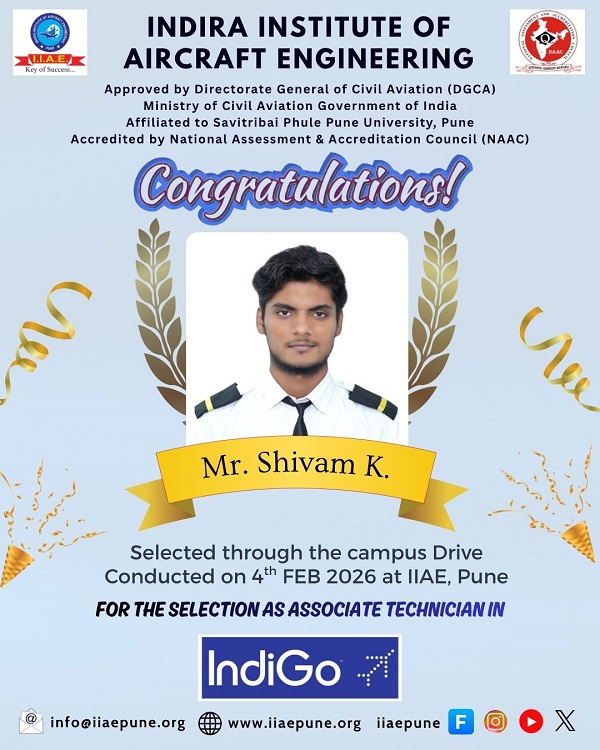 Studying at Indira Institute of Aircraft Engineering has been a great learning experience. The practical training, knowledgeable faculty, and aviation-focused environment have helped me build strong technical skills and confidence for my future in the aviation industry.
