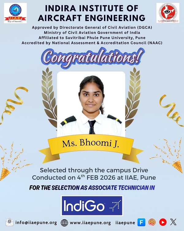 “We at the Indira Institute of Aircraft Engineering, Pune develop techniques and methods among the students by imparting the quality education for providing skilled manpower to the Aviation Industry Worldwide”.