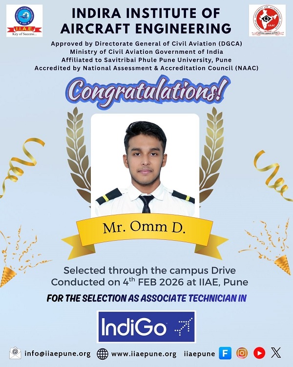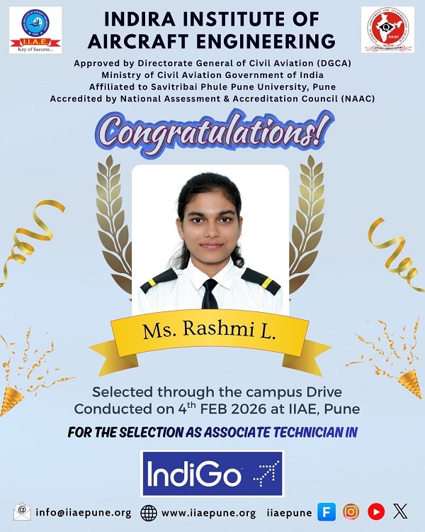 Your career in aviation begins here — with the assurance of success at Indira Institute of Aircraft Engineering.